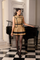 A golden tweed dress with subtle sequins, black fringes and velvet trimmings - the ultimate showstopper.