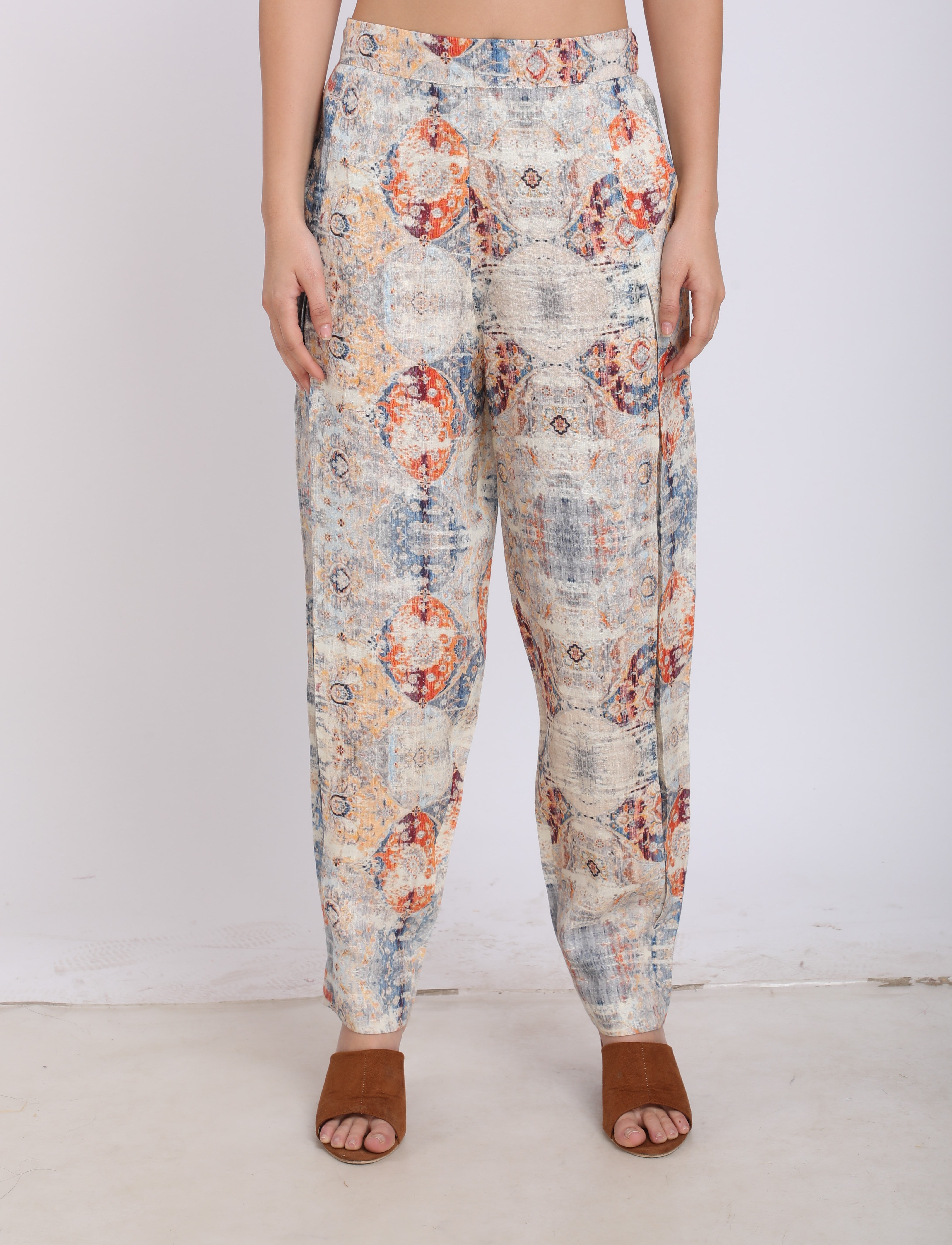Digital Print Blazer And Pants With Elasticated Back Made In 100% Linen With Super Soft Hand Feel And Relaxed Fit.