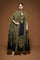 Featuring a digitally printed cape in Crepe with inner and belt all embellished with rhinestone embroidery.