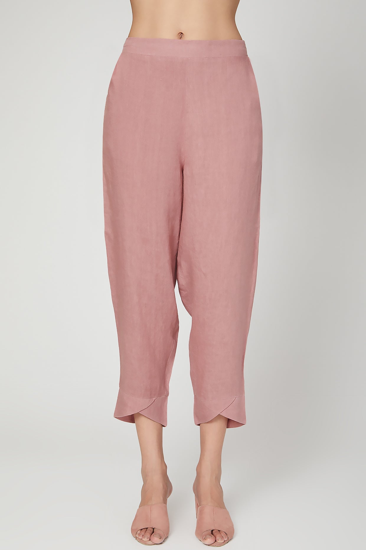 Rose Pink Asymmetrical Cape With 3 Buttons And Pants With Elasticated Back.