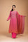 Featuring a digitally printed Kurta in Bemberg Crepe, paired with a georgette dupatta and dyed Crepe plazo, all adorned with rhinestone embroidery.