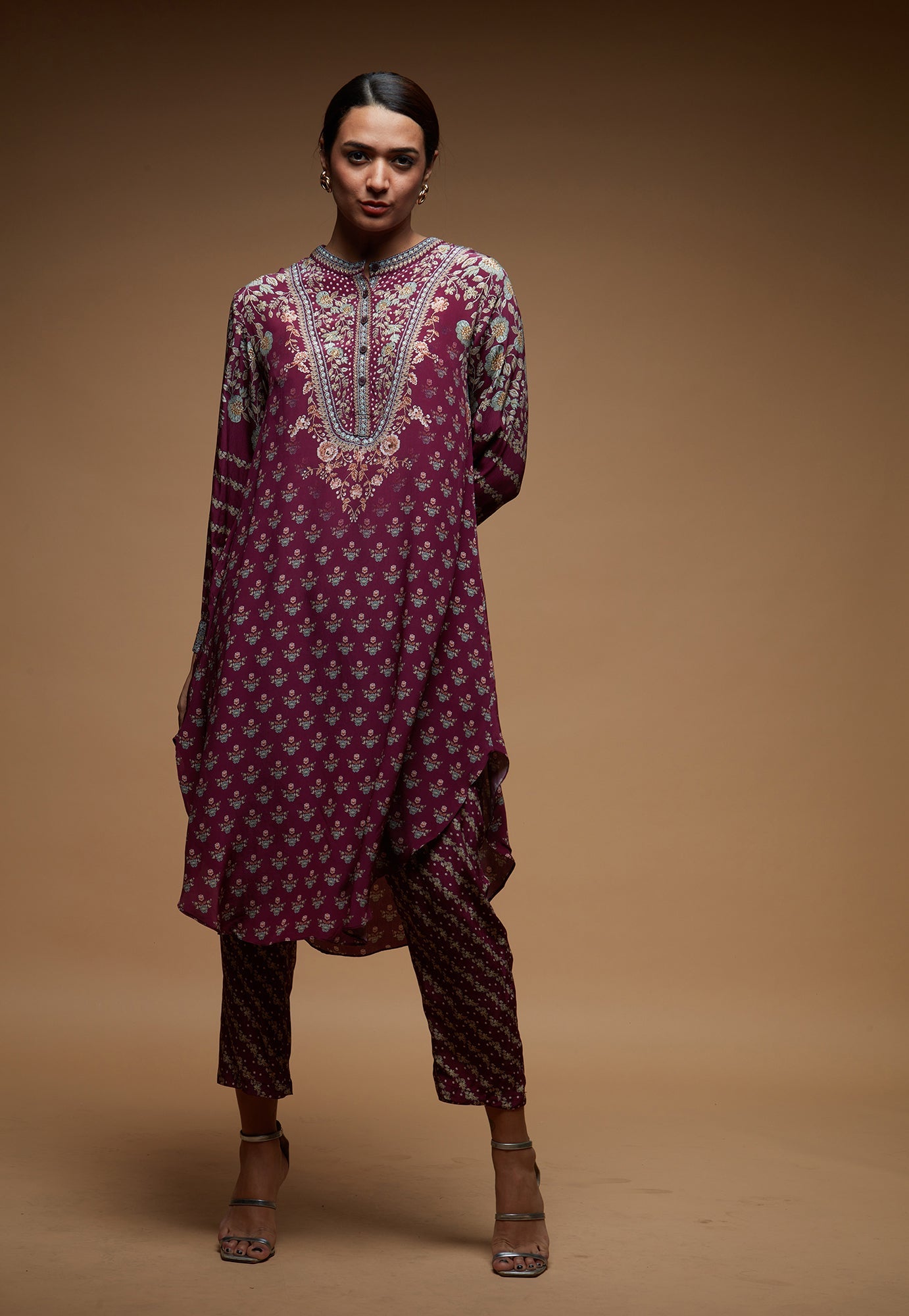 Featuring a digitally printed co-ord set, embellished with rhinestone embroidery.