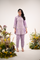 A Lavender Linen coord set with intricate thread embroidery running through the kurta and pant borders. Finished with scalloped sleeves and delicate detailing, it’s a graceful pick for both festive and elevated everyday moments.
