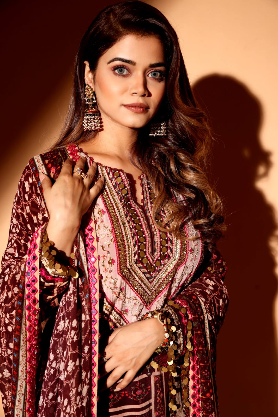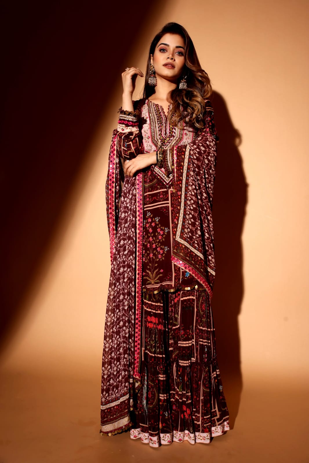 A mosaic of traditional patterns. This sharara set is a wardrobe staple for any occasion.