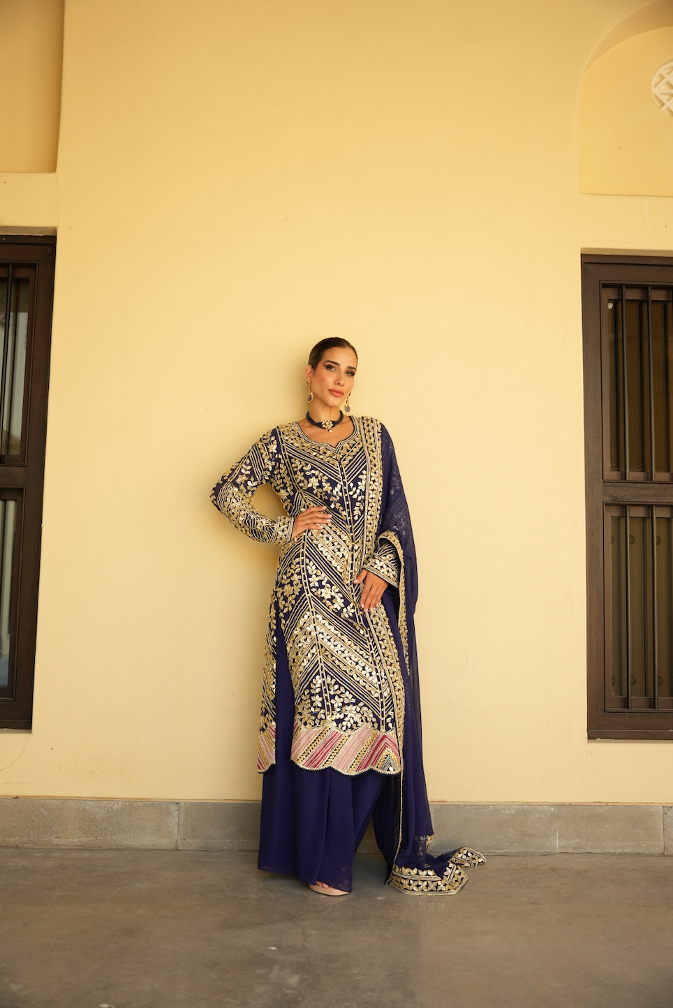 MIDNIGHT BLUE PARISAA LONG KURTA WITH SHARARA