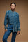Showcasing a digitally printed shirt, beautifully embellished with rhinestone embroidery.