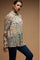 Showcasing a digitally printed shirt, beautifully embellished with rhinestone embroidery.