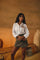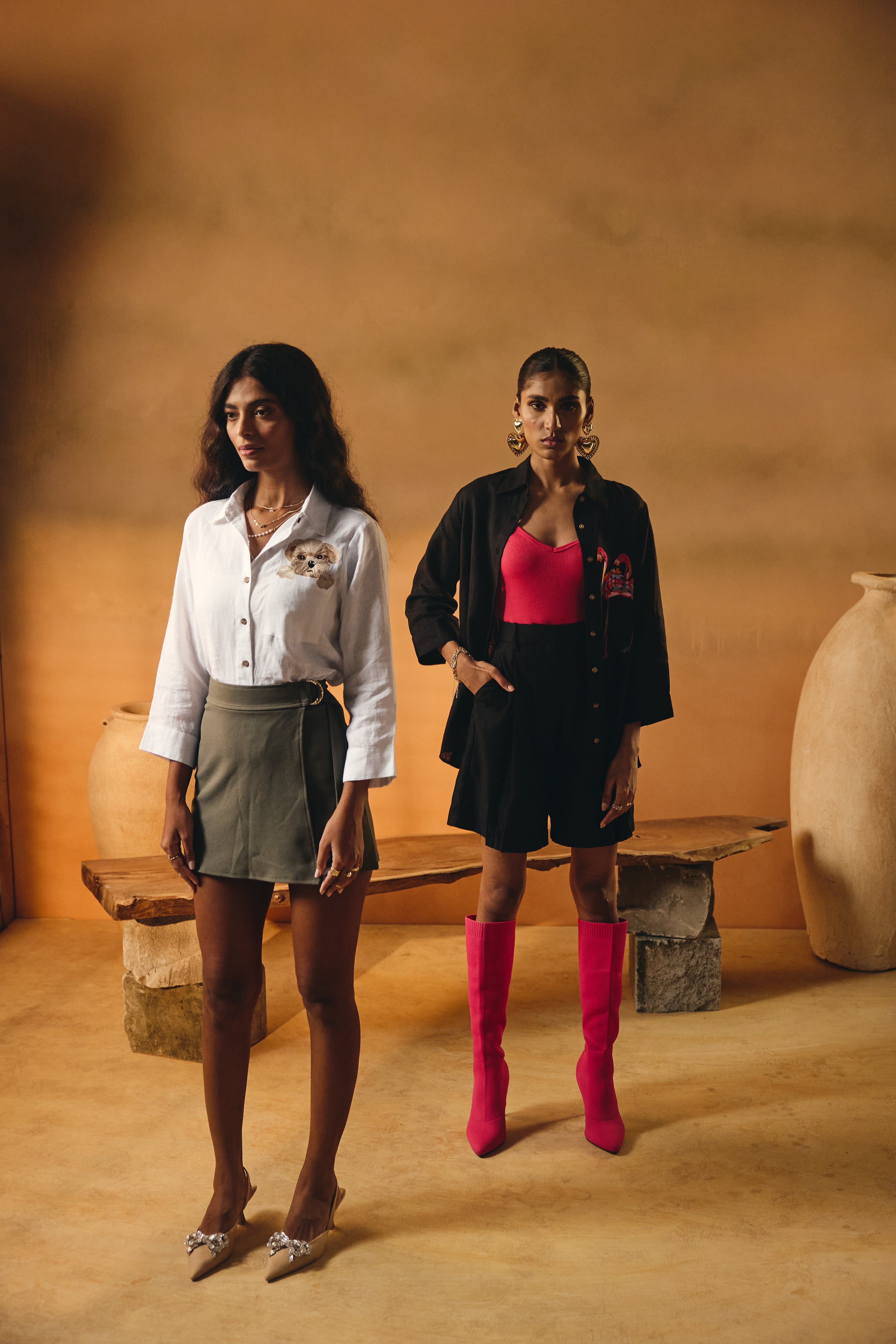 Ivory dog embroidery ladies shirt made in finest pure linen with soft hand feel.