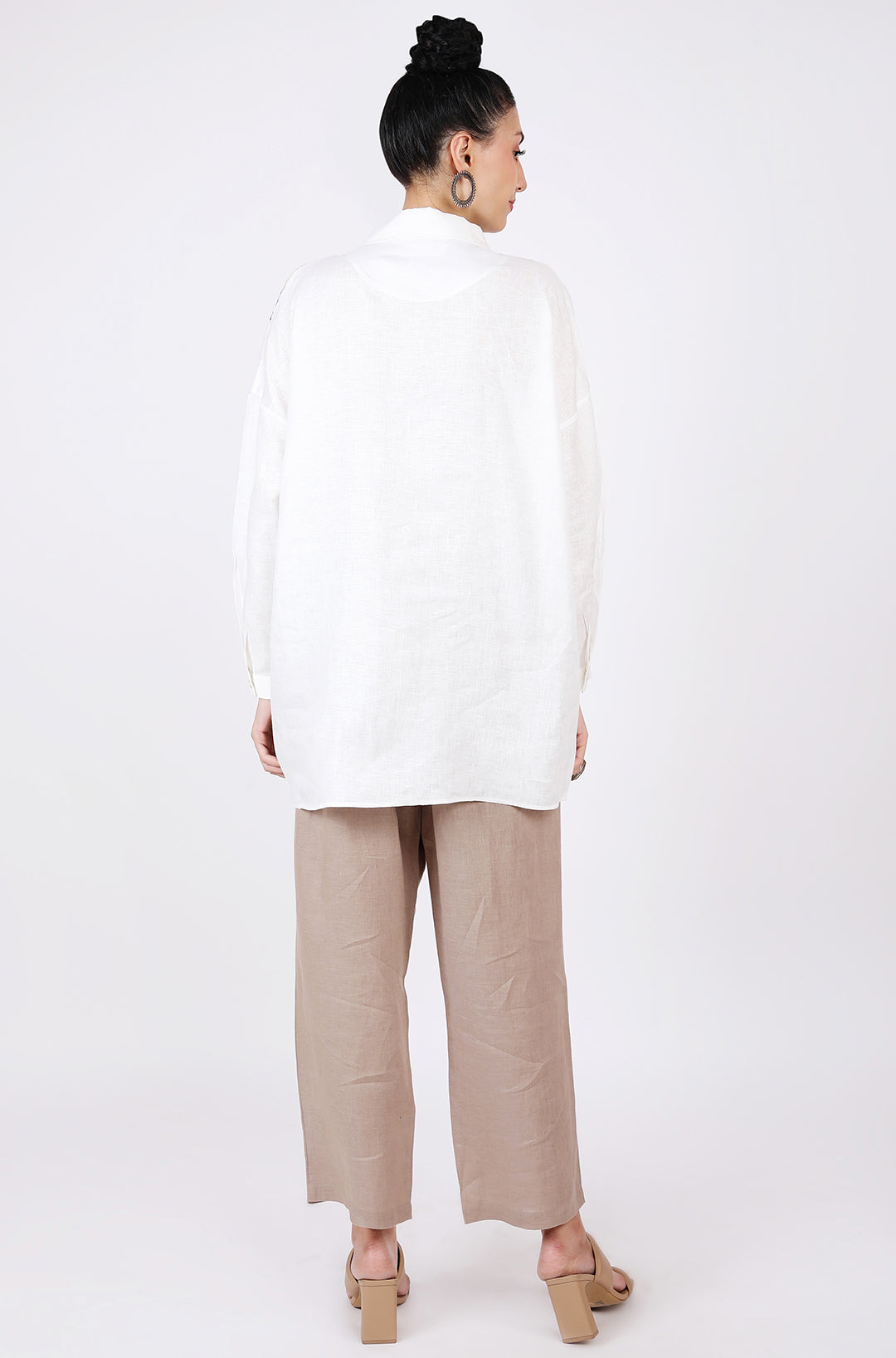 Ivory zebra print shirt made in finest pure linen with soft hand feel