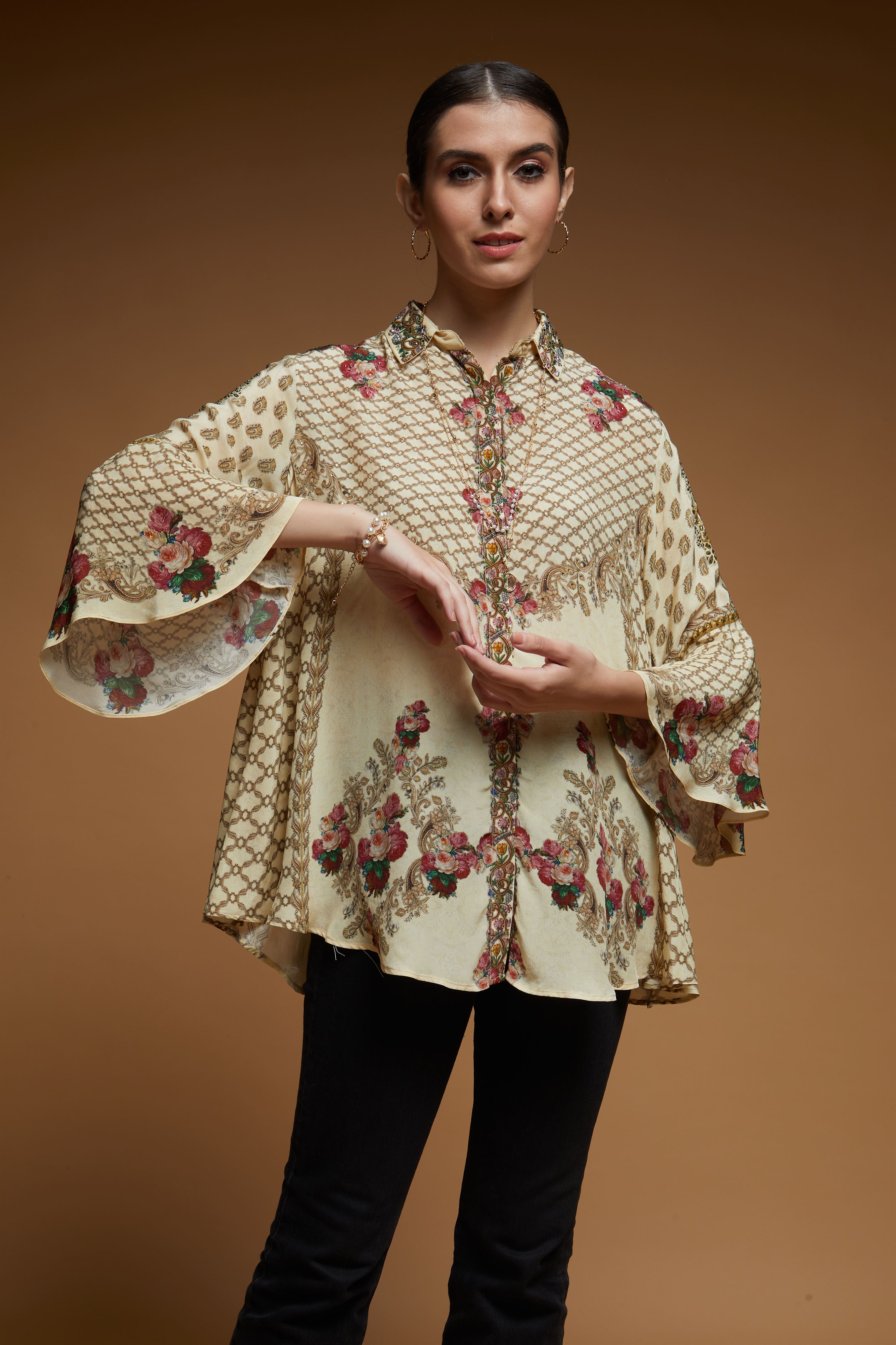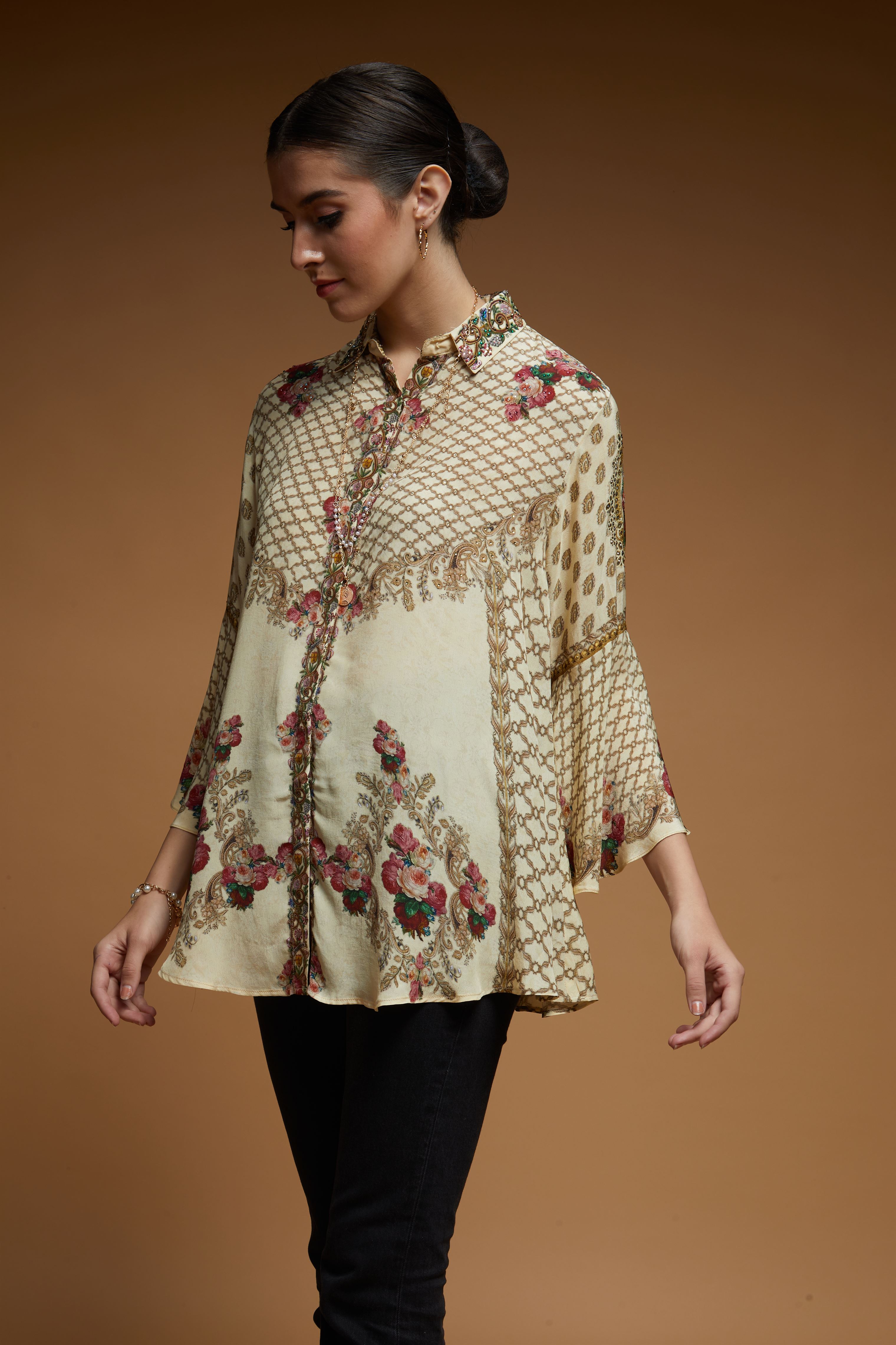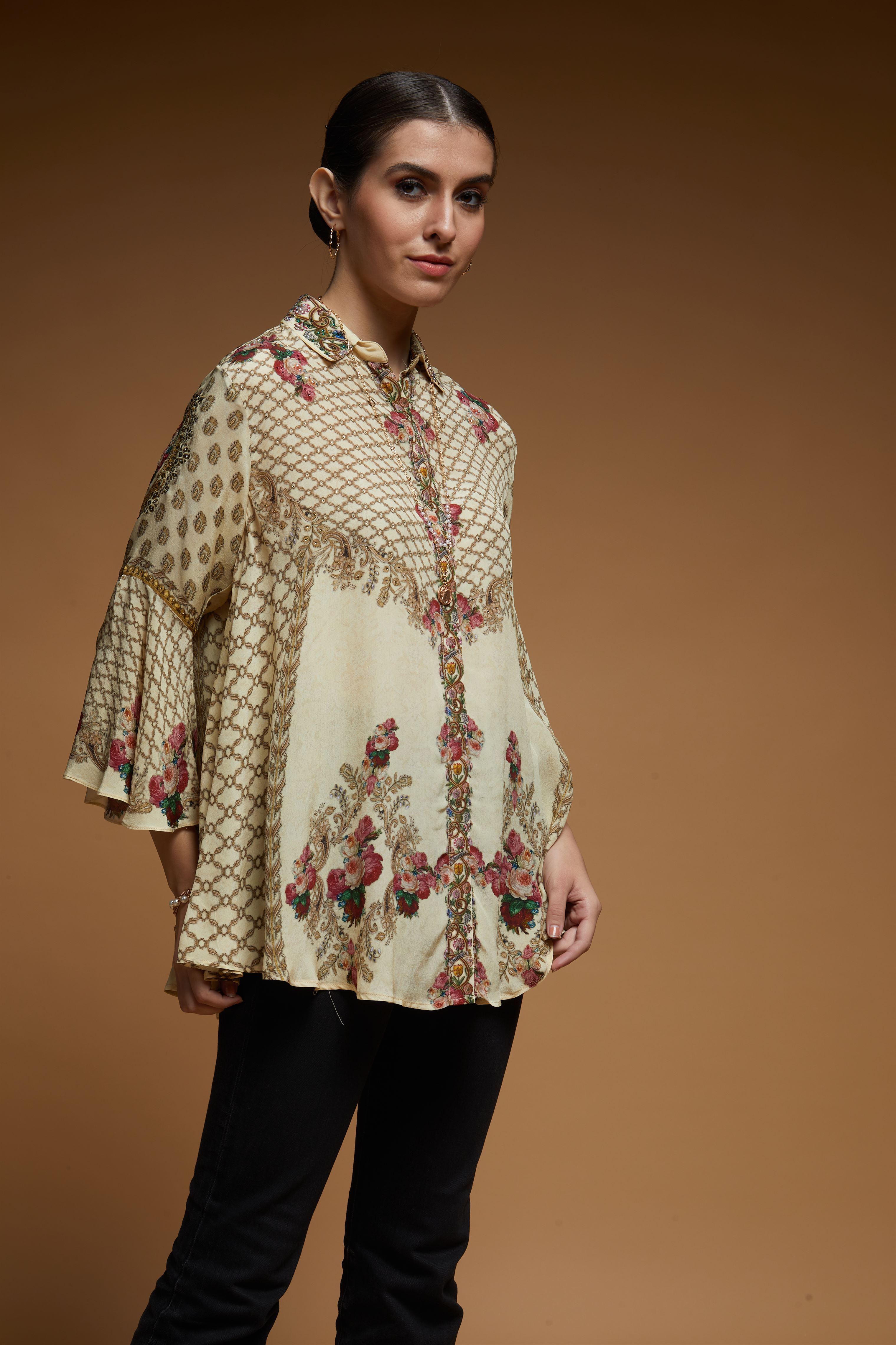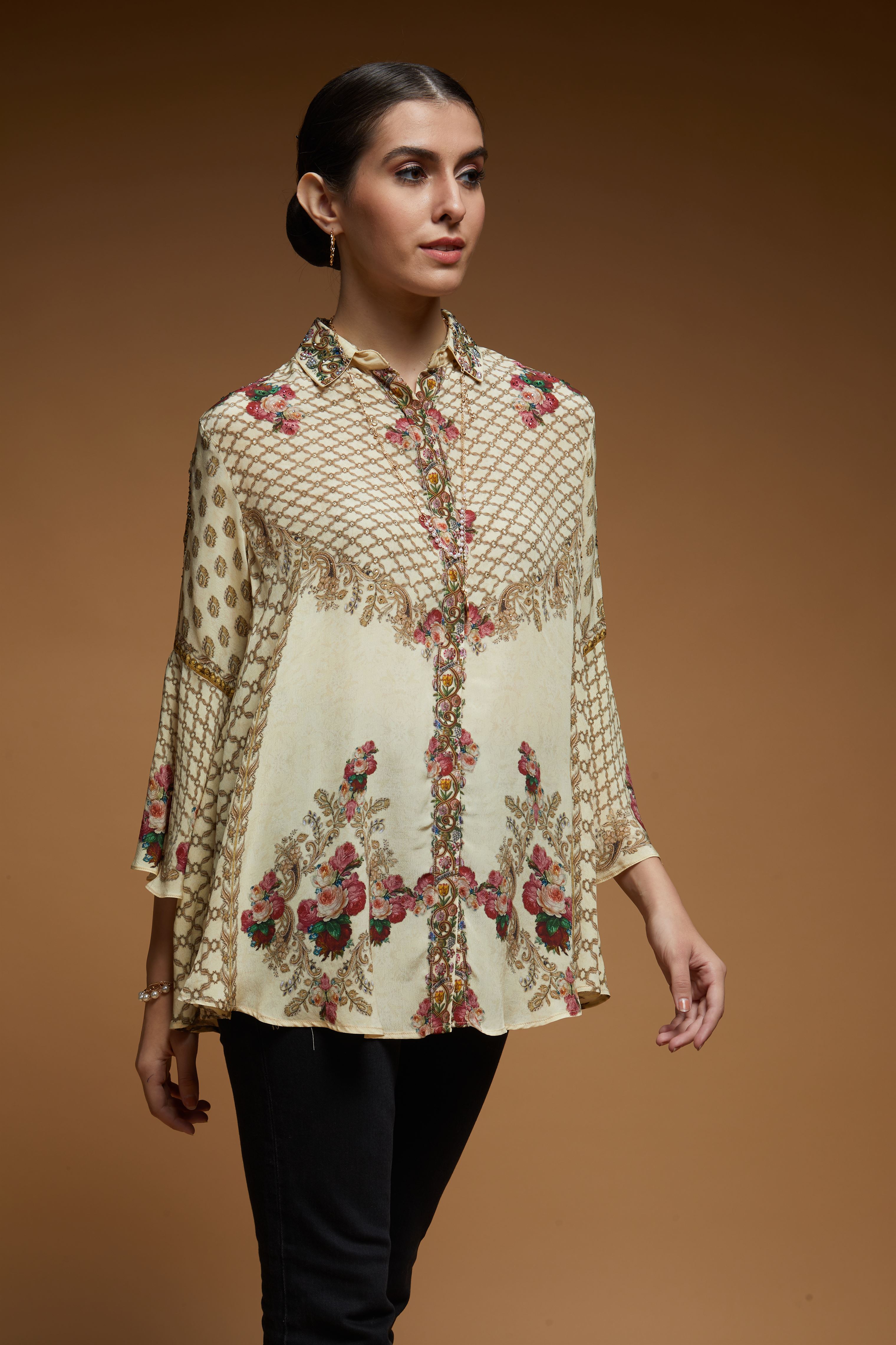 Featuring a Shirt / Top with Digital print . Can be worn as a Shirt over tights, jeans, trousers. Perfect attire for casual or occasion. Festive wear collection.