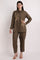 Olive Big Shirt With Floral Handwork