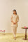 This elegant short A-line Haniya ensemble is crafted from pure Silk Chanderi fabric, offering a luxurious and graceful silhouette. It is beautifully teamed with a traditional Dogri salwar and a delicate Silk Organza dupatta, adding a soft and ethereal touch to the look. The outfit features a sophisticated zero-neck design with a slit and three-quarter sleeves, combining modern elements with timeless elegance. The ensemble is adorned with exquisite Parsi Gara embroidery, intricately highlighted with Tilla, Gota, and pearls, creating a stunning visual appeal. The sleeves of the kurta are elegantly finished with detailed pearls, adding a refined and intricate touch. The entire outfit is beautifully completed with a fine lace and the signature Chanderi silk fabric, offering a polished, luxurious finish that exudes both grace and sophistication.