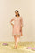This exquisite ensemble is crafted from pure Silk Chanderi fabric, offering a luxurious and refined texture. It is elegantly adorned with heritage Parsi Gara embroidery, showcasing intricate craftsmanship that adds timeless beauty to the design. The outfit features a chic zero-neck with a placket and three-quarter sleeves, combining traditional elegance with contemporary flair. Paired with a stylish tulip dhoti, the ensemble radiates a unique sense of grace and sophistication. The entire creation is beautifully highlighted with delicate Tilla, Gota, and pearls, which enhance the intricate embroidery and elevate the overall look. Finished with the finest Chanderi silk fabric, this ensemble is a perfect fusion of heritage, craftsmanship, and modern style.