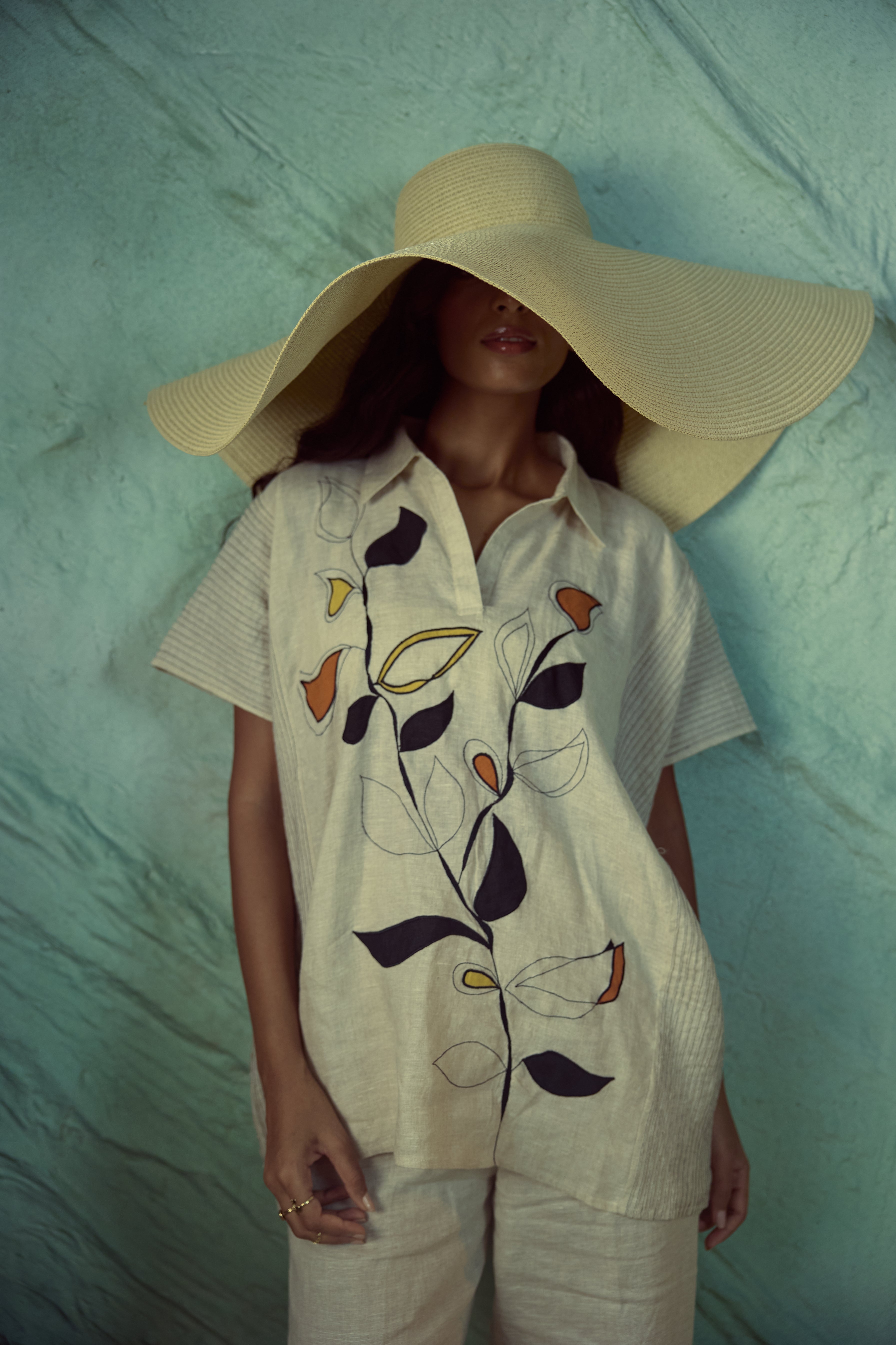 This beige bolero set features elegant pintuck detailing and delicate embroidery. The lightweight design adds a touch of sophistication and versatility, perfect for layering over any outfit