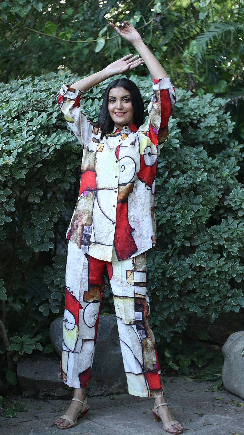 Espiral Digital Print Shirt Made In Finest Pure Linen With Soft Hand Feel