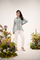 A sheer ice blue chiffon shirt adorned with soft floral appliqués, blending delicacy with structure. Lightweight, versatile, and quietly statement-making — perfect for modern festive dressing or a chic day look.