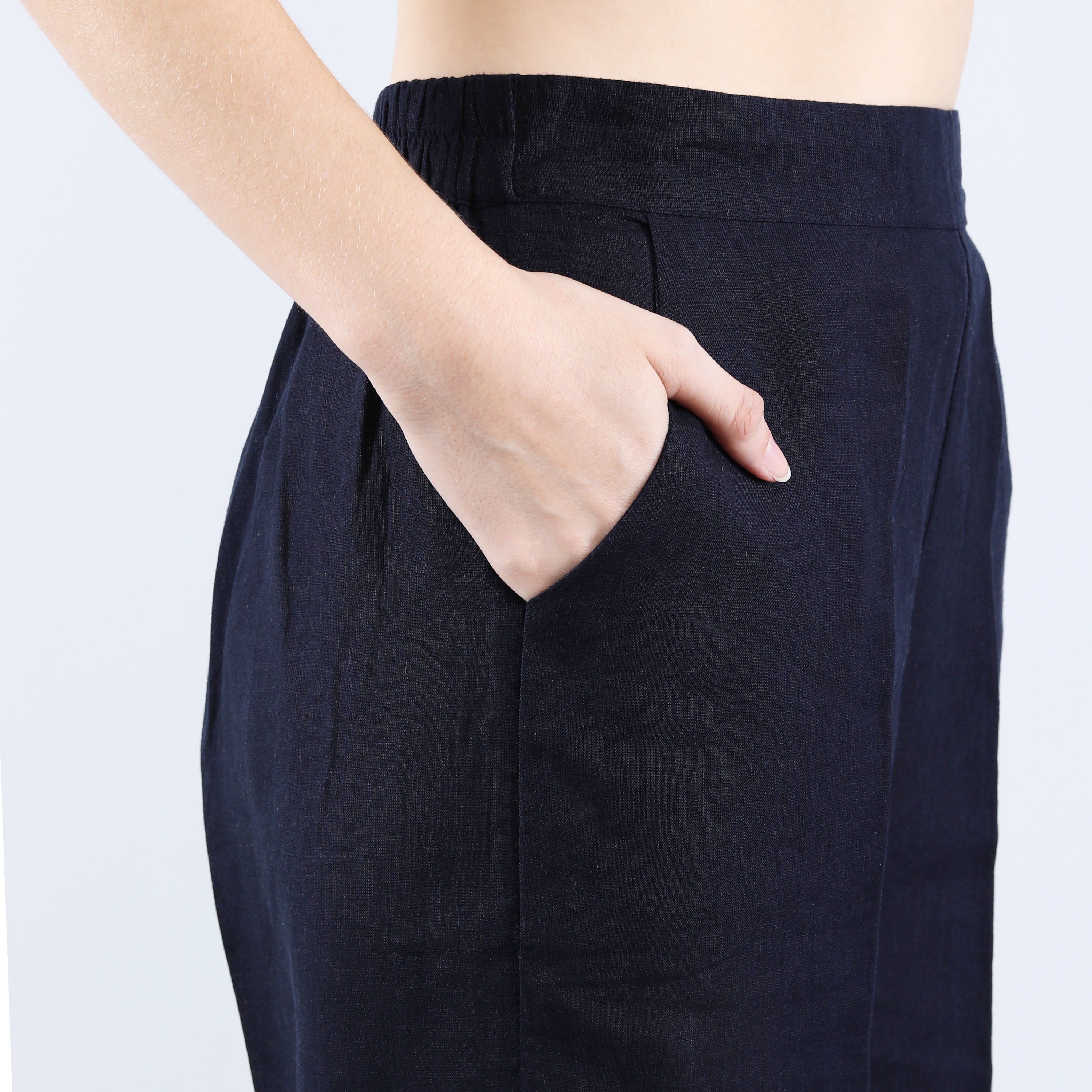 This elegant navy co-ord set is crafted from lightweight linen and adorned with delicate floral embroidery. The set includes a tailored top and matching trousers, offering a refined yet comfortable fit. Perfect for a polished, relaxed look, this ensemble seamlessly blends sophistication with the breathable ease of linen.