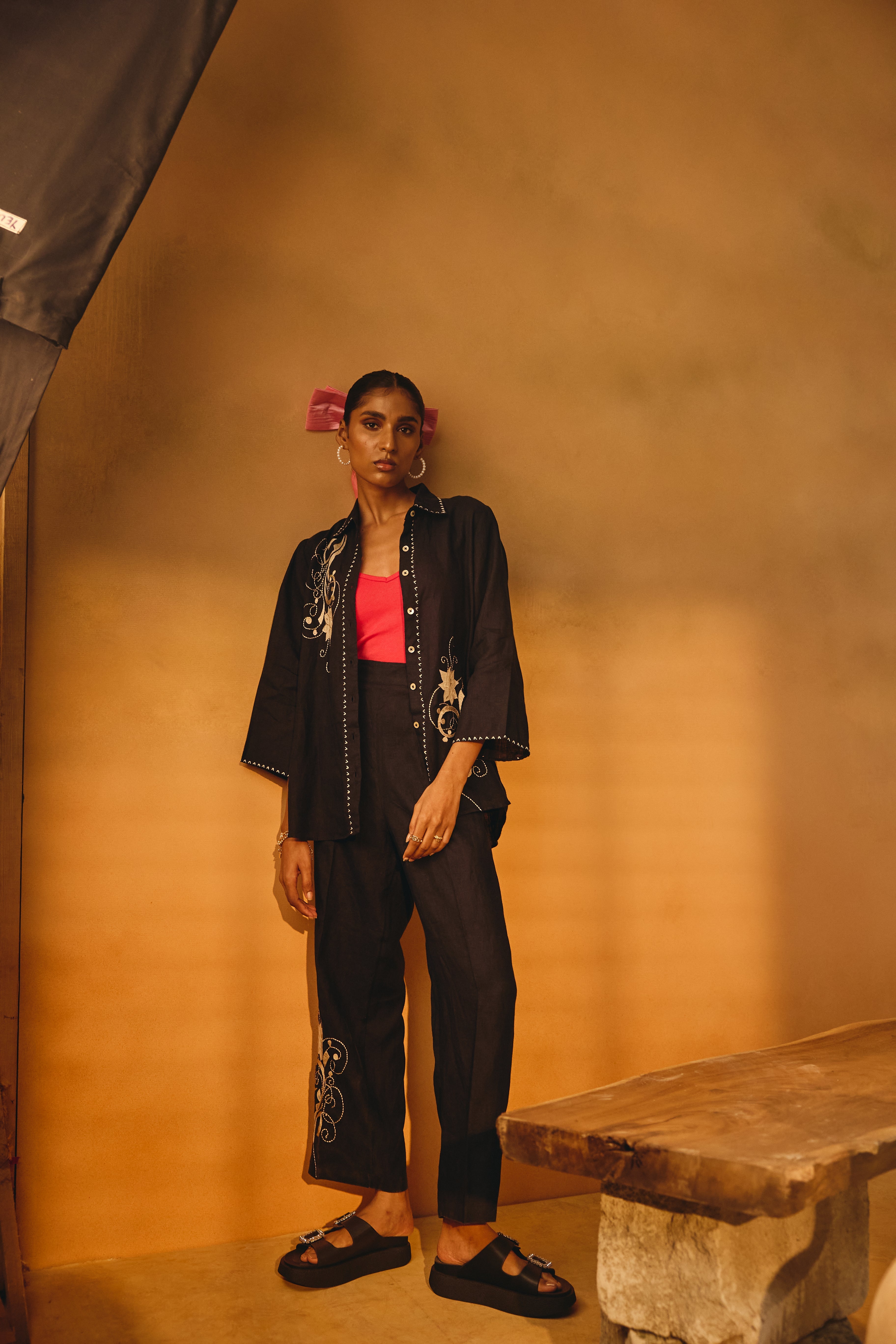 NAVY FLOWER EMBROIDERY CO-ORD SET