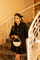 Black tweed co-ord set with sequin detailing all over, featuring a pleated skirt with a side zip and a jacket with crystal buttons.